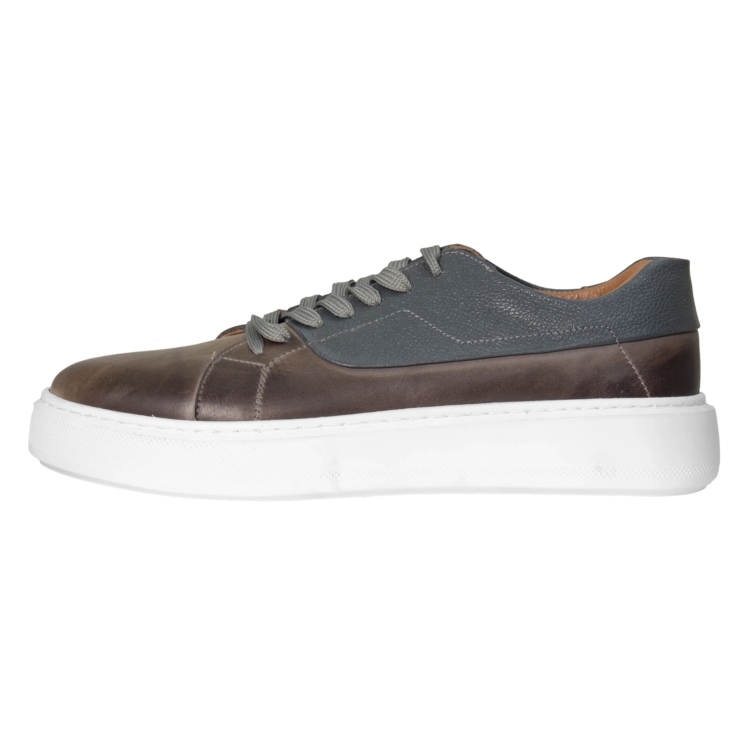 فراتر از سادگی: کفش مردانه چرم طوسی تیکه دوزی – میراث کلاسیک در استایل مدرن