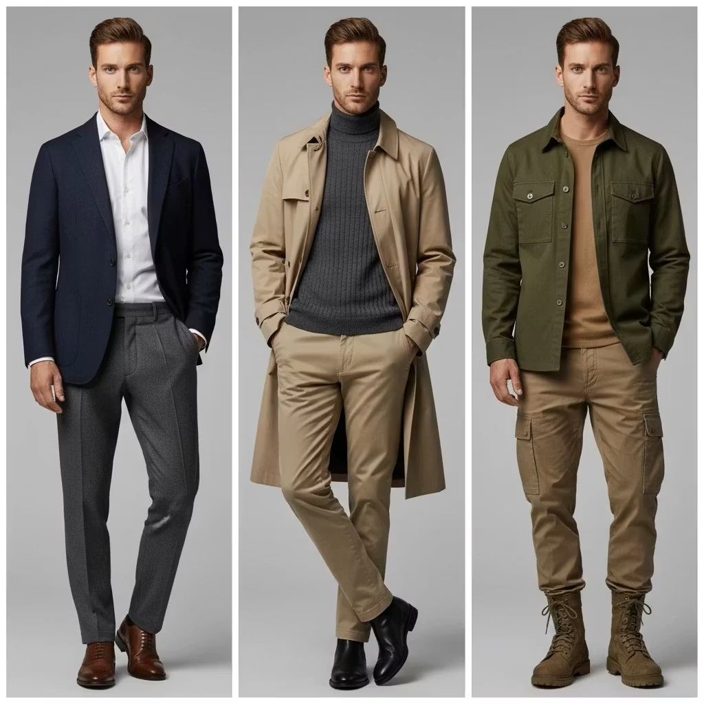 - سبز زیتونی + خاکی: برای استایل نظامی یا اسپرت