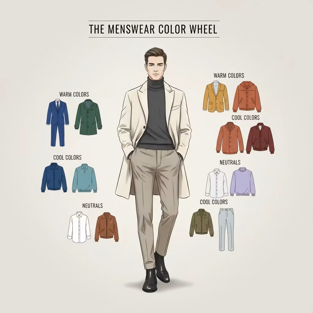 برای ست کردن رنگ مردانه، درک این تقسیمبندی بسیار حیاتی است. مثلاً اگر لباسی با رنگ سرد مثل آبی سرمهای دارید، ترکیب آن با رنگ گرم مثل قهوهای سوخته یا بژ باعث تعادل دیداری خواهد شد.