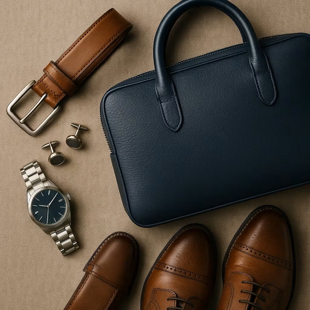 اکسسوریها حلقه اتصال در فرآیند ست کردن رنگ مردانه هستند؛ آنها پلی میان آیتمهای بزرگ لباس شما ایجاد میکنند. در استایلهای رسمی، هماهنگی بین رنگ کمربند و کفش یک قانون اساسی است؛ برای مثال، یک ست چرم قهوهای تیره باید با کمربند همخانواده باشد، صرفنظر از رنگ کراوات یا کت. در مورد ساعت، بند آن باید با تُن کلی لباس (رسمی، اسپرت، یا کژوال) و رنگ فلز آن (نقرهای یا طلایی) با سایر زیورآلات مردانه (مانند دکمه سرآستین) سازگار باشد. برای کیف یا کوله، همیشه بهتر است رنگی انتخاب شود که در تضاد قوی با کت نباشد؛ یک کیف چرم سرمهای، مکمل فوقالعادهای برای کتهای خاکستری یا بژ است. نکتهی طلایی این است: اکسسوریها باید مکمل باشند، نه رقیب؛ اجازه دهید رنگ اصلی لباس و شخصیت شما بدرخشد و اکسسوریها تنها جزئیات ظریف تکمیلکننده باشند.