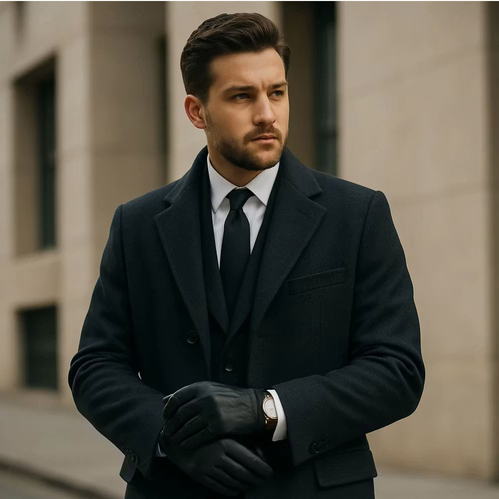 این ترکیب، استاندارد مردان الیگانت از دههی شصت میلادی تا امروز است. در سرمای زمستان، اورکت نهتنها از شما محافظت میکند بلکه به کتوشلوار ظاهری اشرافیتر میدهد. استفاده از شال نازک پشمی بین اورکت و کت، سطح جذابیت را دوچندان میکند. وقتی اورکت پشمی سرمهای روی کتوشلوار فیت قرار میگیرد، فرم بدن منظمتر و قدرتمندتر دیده میشود. این سبک برای محیطهای رسمی مانند جلسات یا رویدادهای تجاری عالی است. ترکیب با کیف چرمی دستی و دستکش مشکی، تصویر یک مرد با شخصیت حرفهای را کامل میکند. رنگ سرمهای هم از نظر روانشناختی حس اعتماد و اقتدار منتقل میکند.